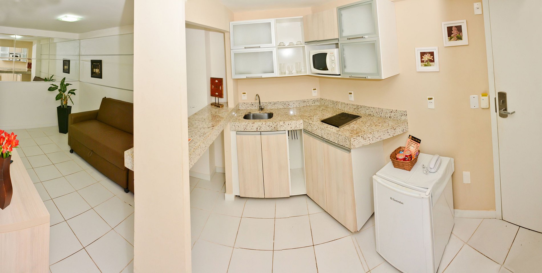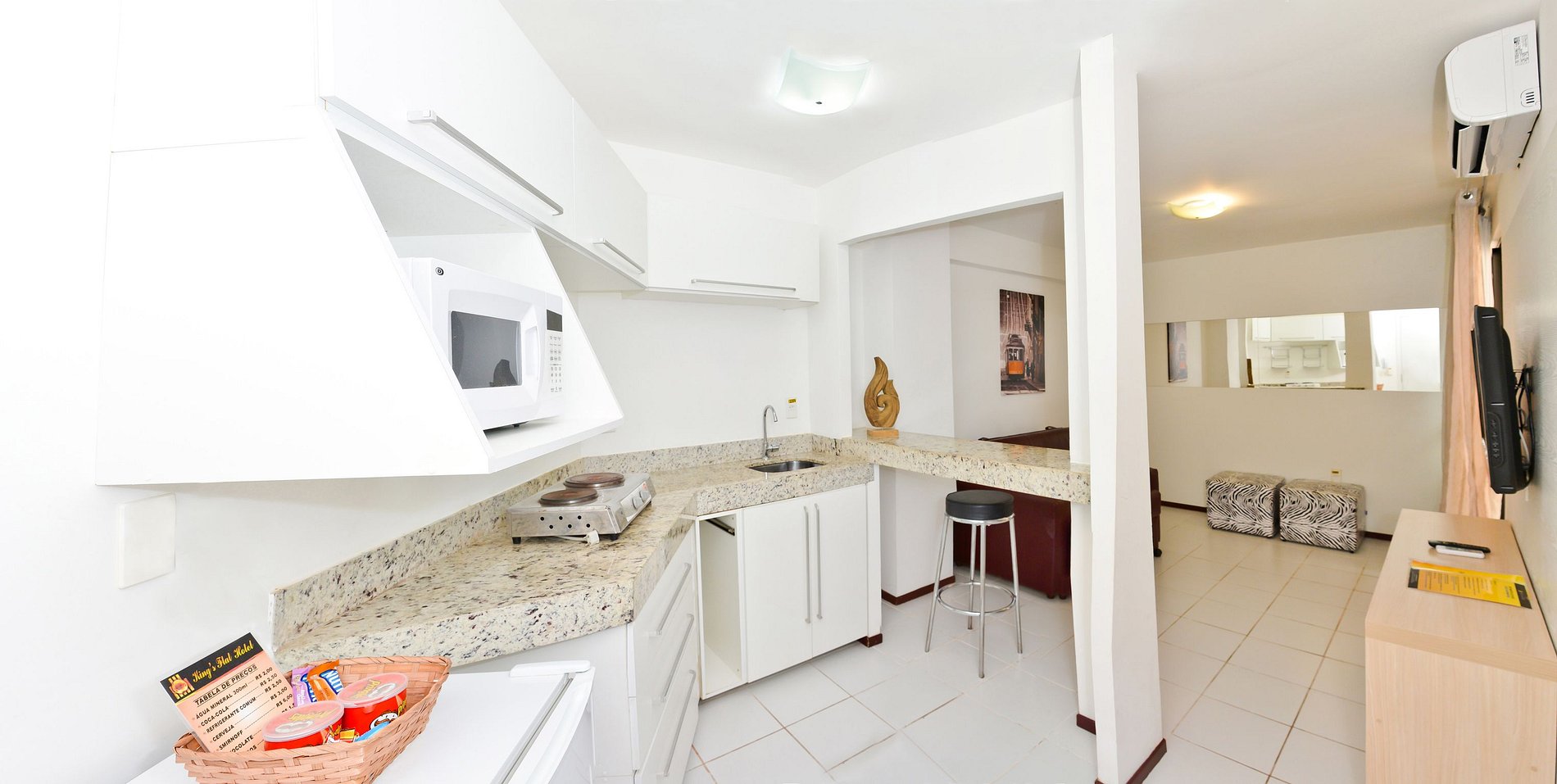 Todos os nossos apartamentos da categoria Standard são estilo flat com suite, ar-condicionado, nos quartos e na sala, Smart TV, Wi-fi gratuito, sala, sofá-cama, cozinha completa, liquidificador, cafeteira elétrica, fogão por indução, frigobar e microondas. Temos serviço de limpeza de quarto diário e um delicioso café da manhã.