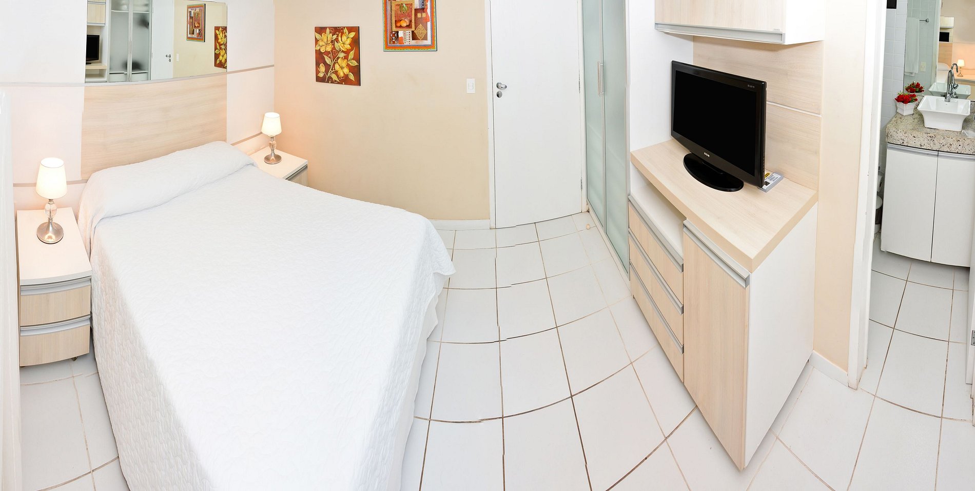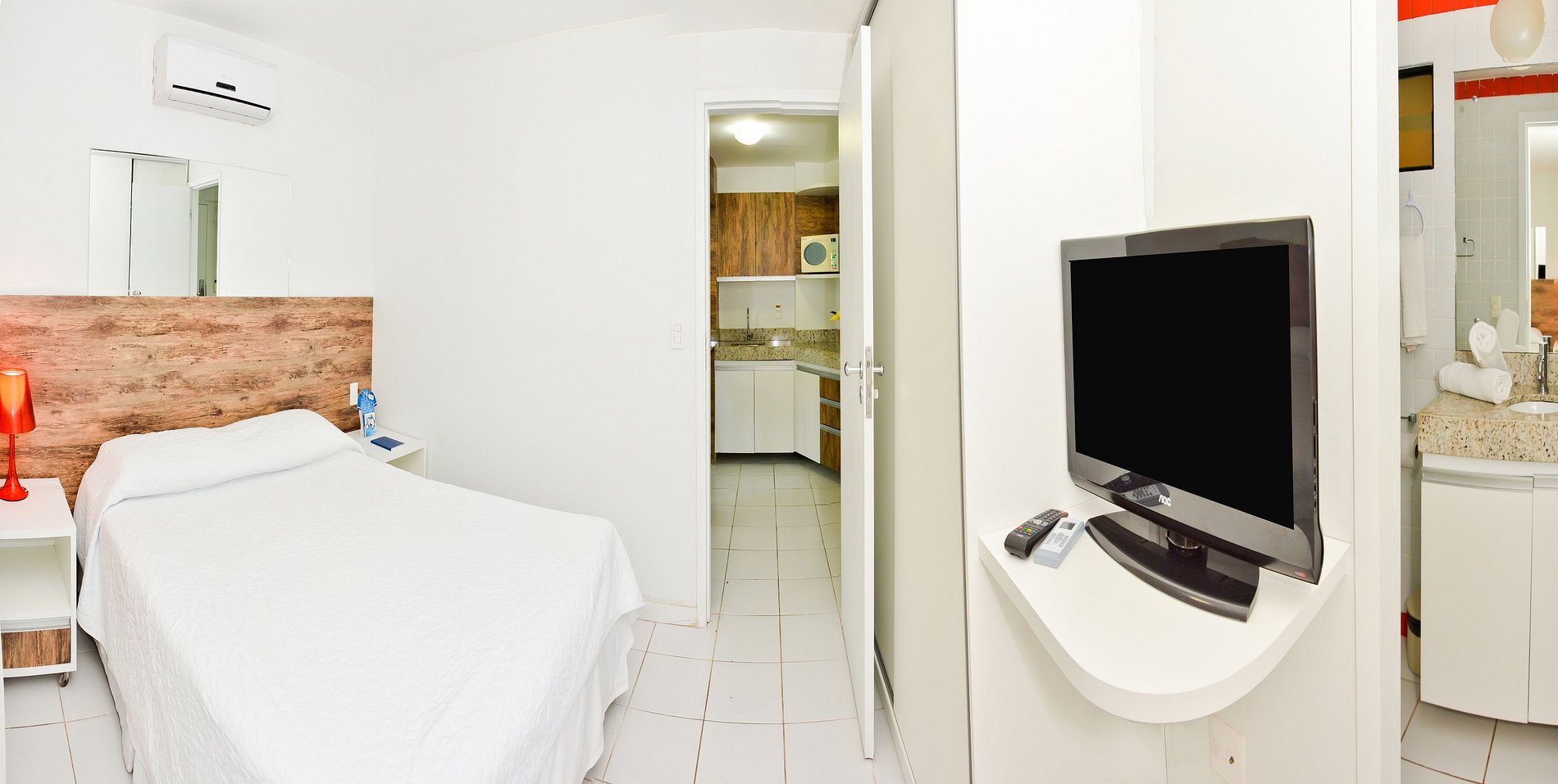 Todos os nossos apartamentos da categoria Luxo são estilo flat com suite, ar-condicionado, nos quartos e na sala, Smart TV, Wi-fi gratuito, sala, sofá-cama, cozinha completa, liquidificador, cafeteira elétrica, fogão por indução, frigobar e microondas. Temos serviço de limpeza de quarto diário e um delicioso café da manhã.